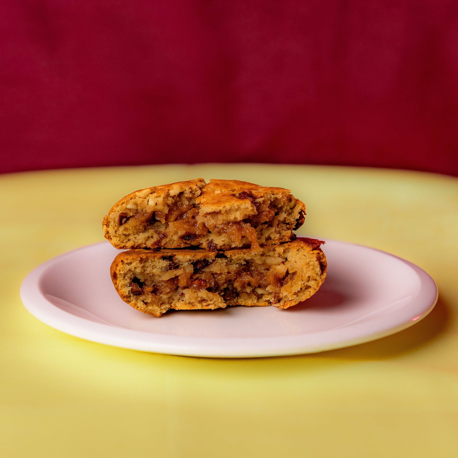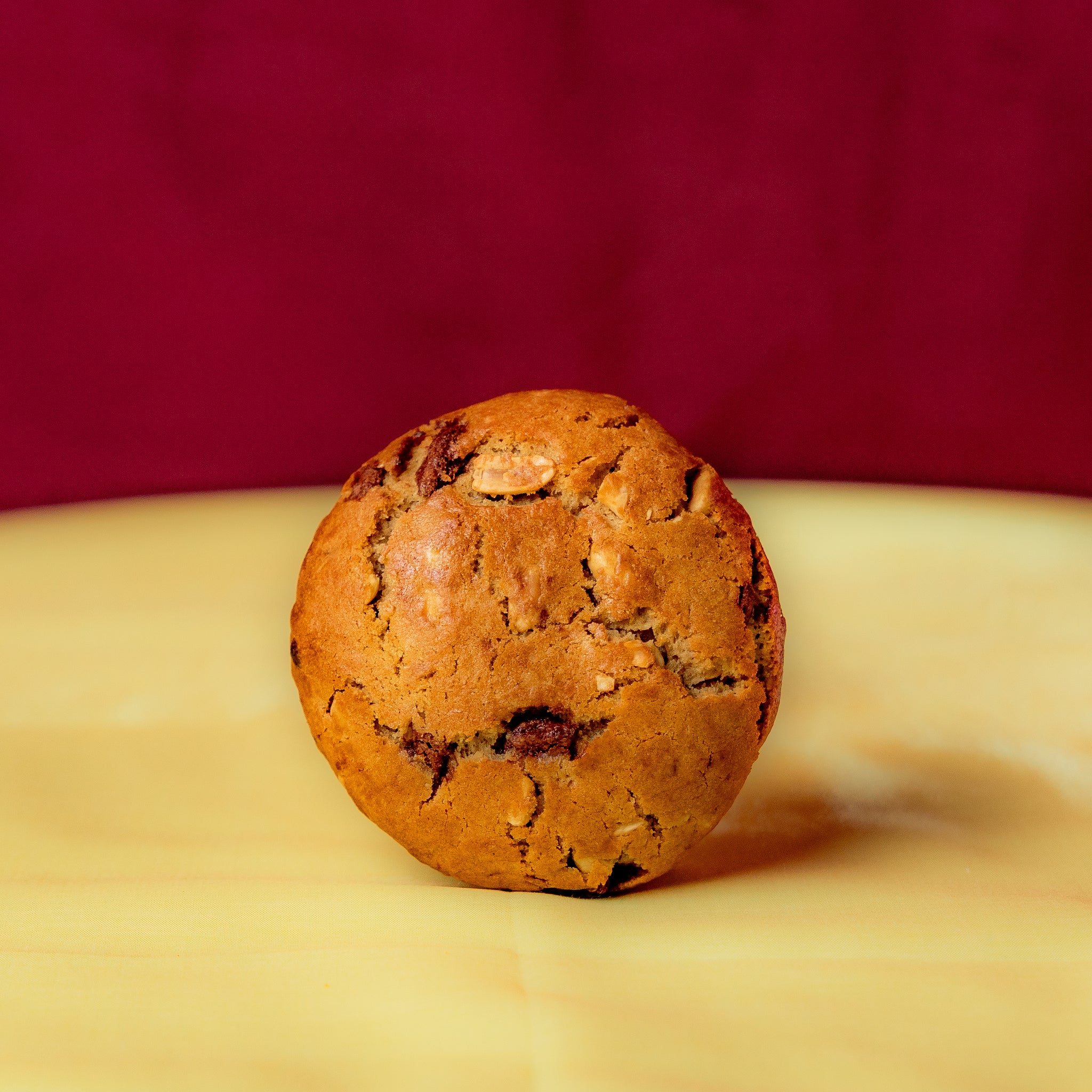 PEANUT BUTTER FILLED COOKIE WITH PEANUTS AND CHOCOLATE CHUNKS IN THE DOUGH