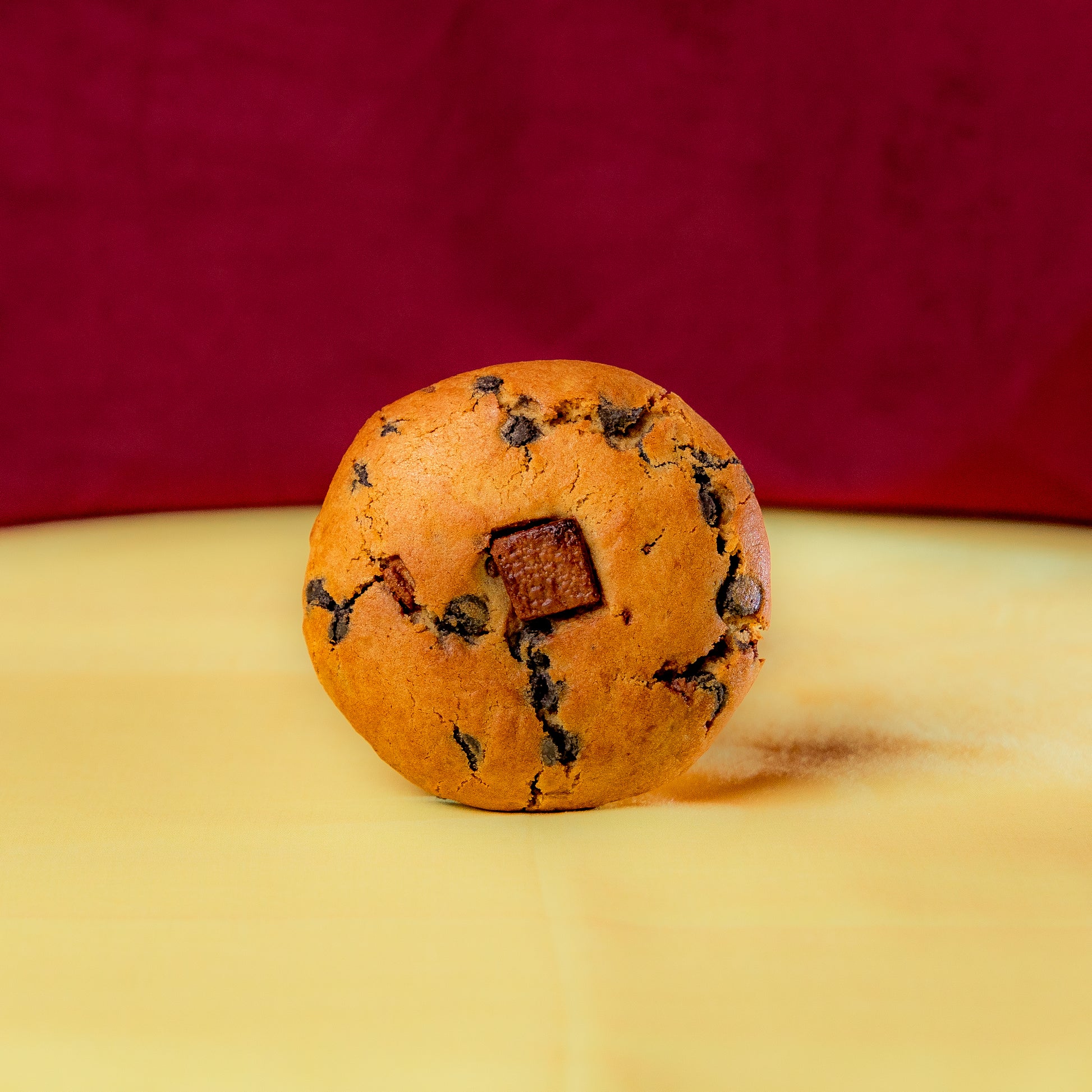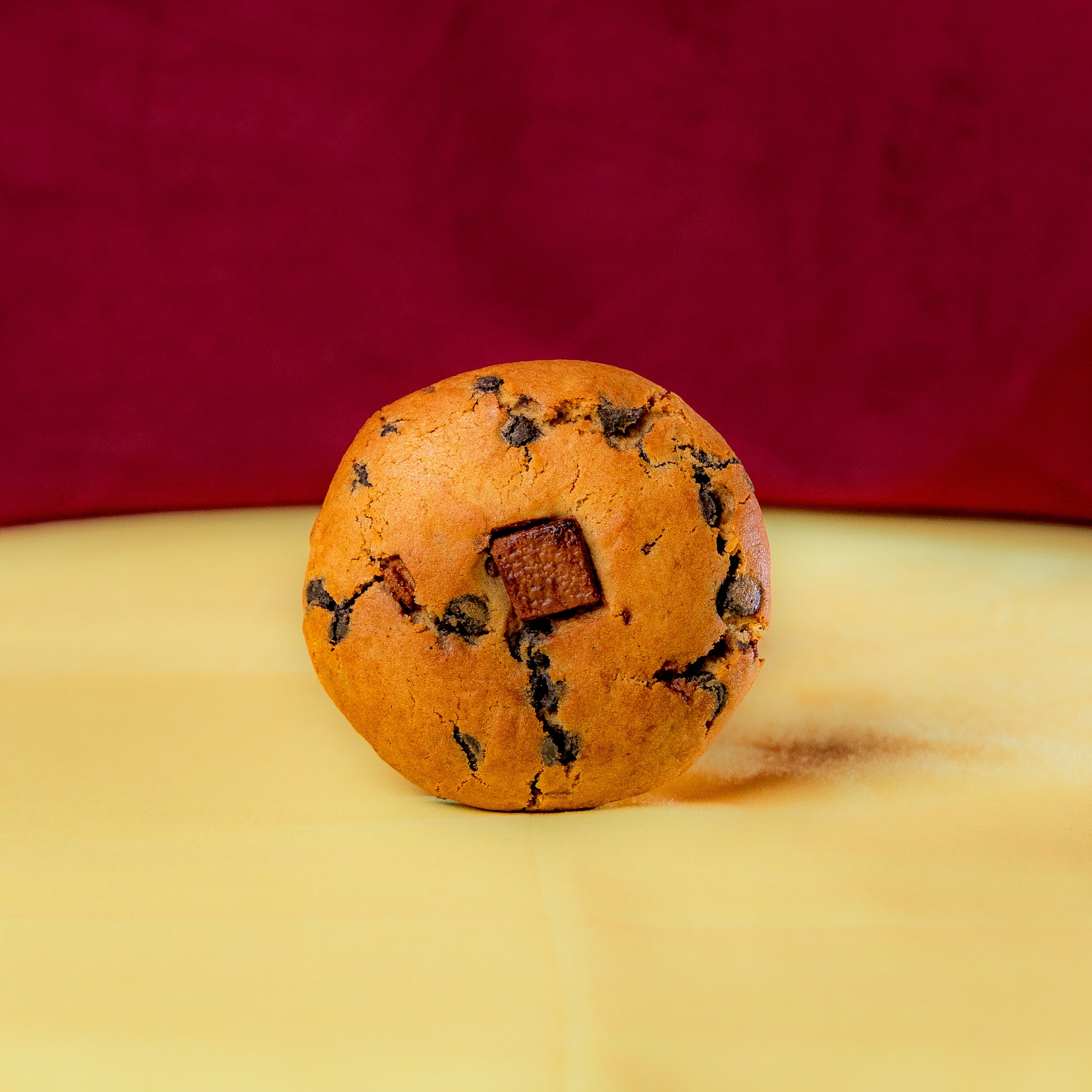 CHOCOLATE FILLED COOKIE WITH CHOCOLATE CHUNKS AND CHOCOLATE CHIPS